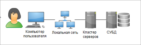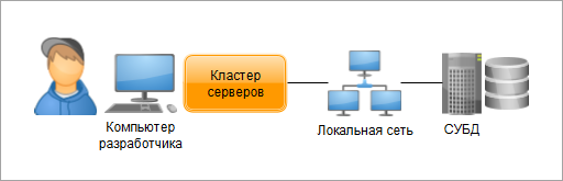 На одном из компьютеров локальной сети расположен кластер серверов «1С:Предприятия». На другом компьютере расположена система управления базами данных, в которой хранится клиент-серверная информационная база.