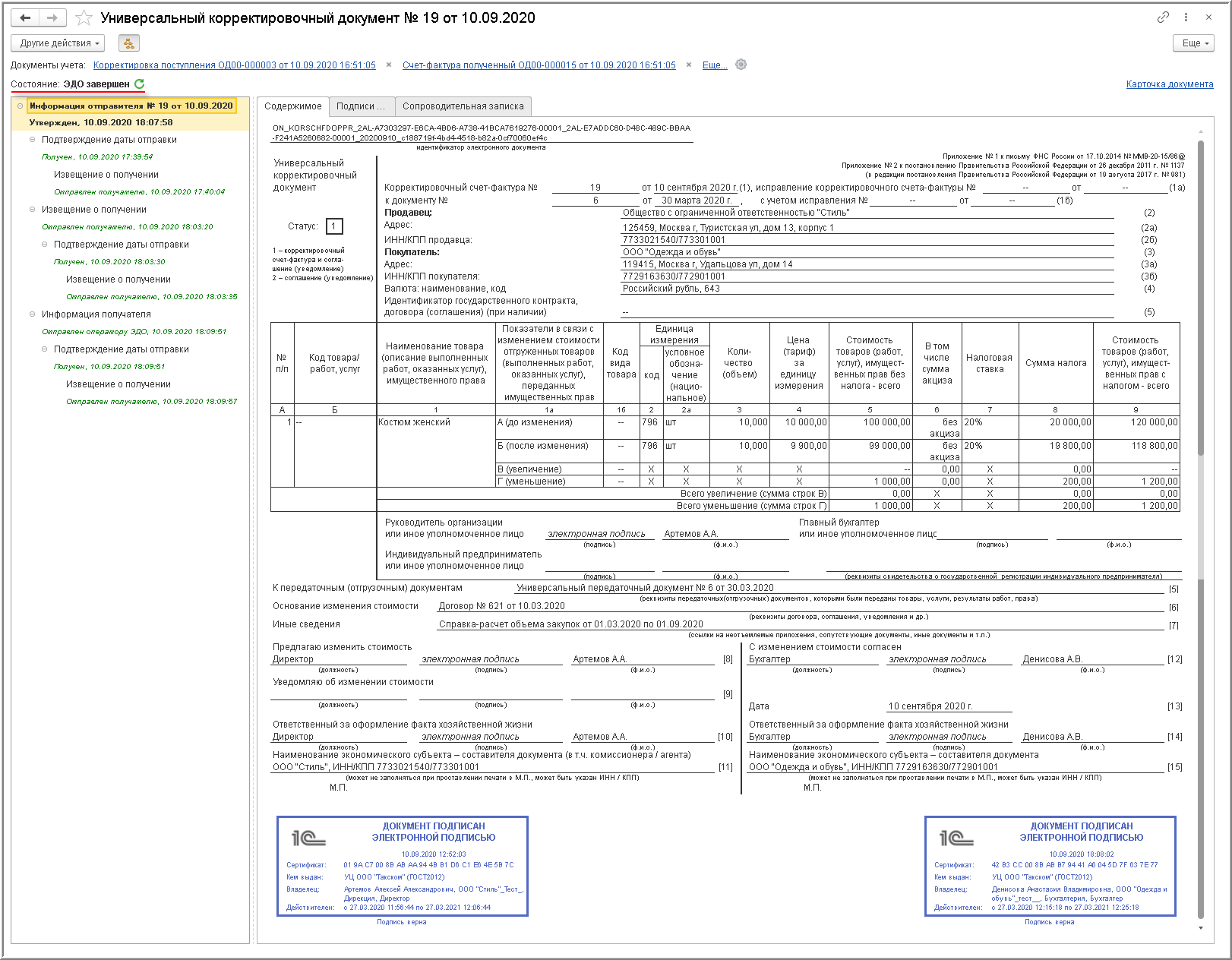 В форме просмотра электронного УКД можно удостовериться, что документ подписан обеими сторонами сделки (рис. 13).