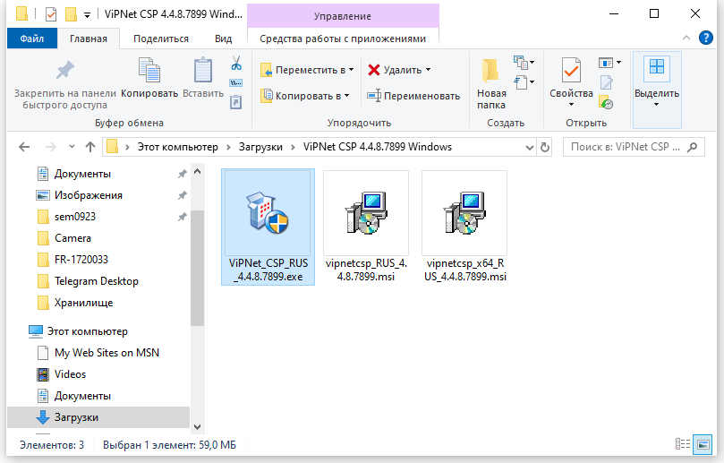 Скачивание дистрибутива ViPNet CSP и установка программы