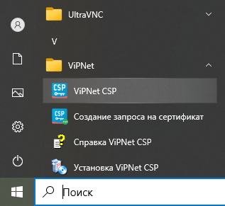 - После перезагрузки компьютера, для регистрации программы, откройте меню "Пуск", выберете "ViPNet CSP" и запустите программу "ViPNet CSP" (рис. 10)