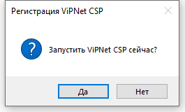 - В появившемся диалоговом окне с предложением запустить ViPNet CSP, нажмите «Да» (рис. 16).
