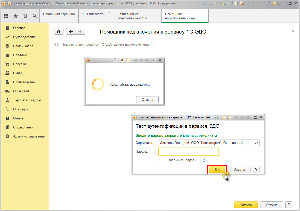 На этом процесс подключения к сервису 1С-ЭДО будет завершен.