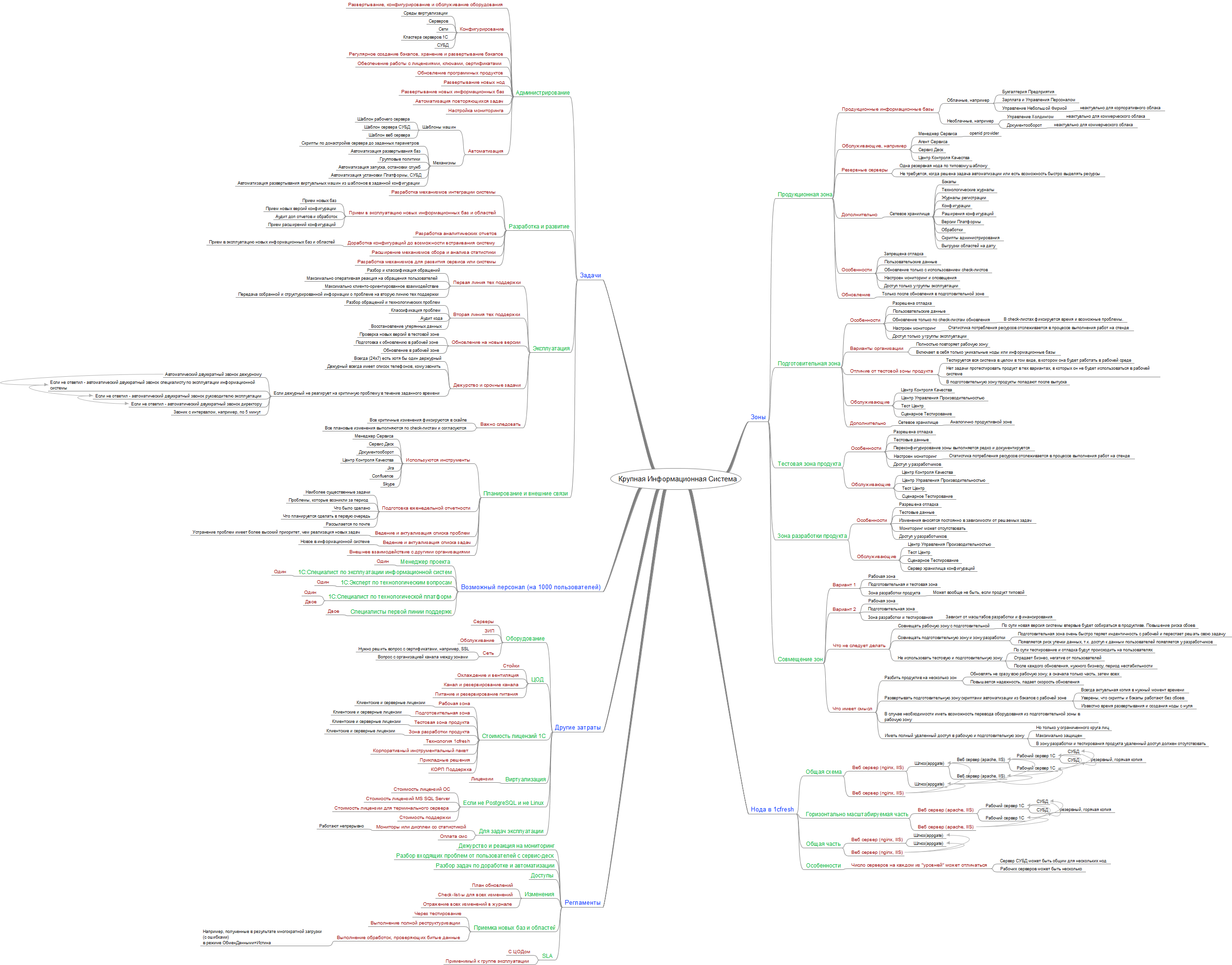 В статье приводится обзор возможной организации эксплуатации крупной информационной системы, построенной с применением технологической платформы 1С:Предприятие.