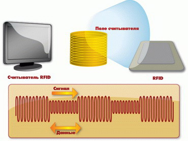 - Считыватель так же способен принимать отраженный меткой сигнал, который по возвращению преобразовывает в понятную компьютеру форму.