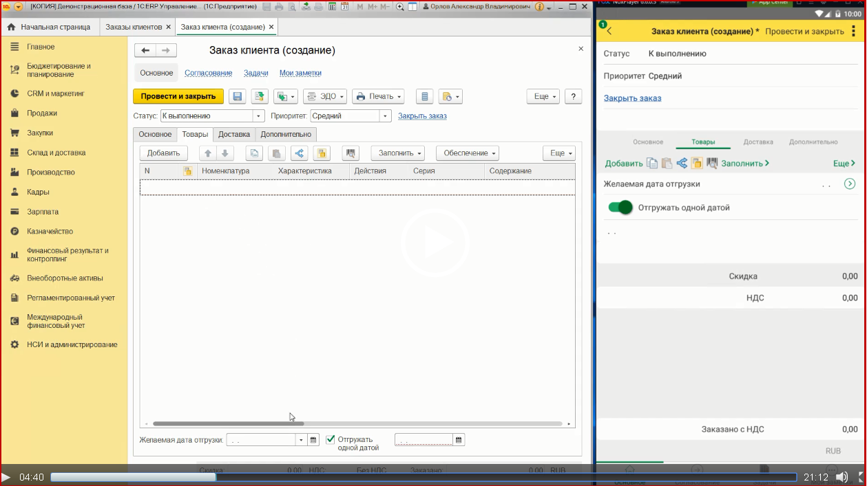 Видеоролики с примерами настройки и работы мобильного клиента 1С:ERP: