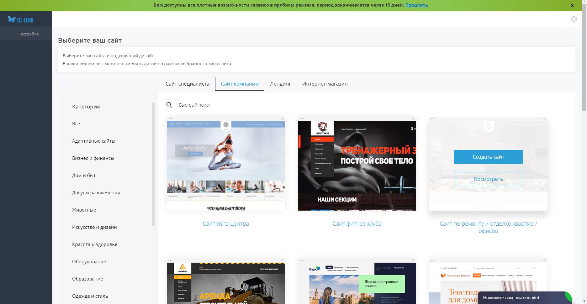 Интеграция с сервисом уже включена в типовые конфигурации "1С:Управление торговлей 11", "1С:Комплексная автоматизация 2" или "1С:ERP управление предприятием". Для начала работы нужно просто включить функциональную опцию НСИ и администрирование – Настройка интеграции – Обмен с сайтом – Использовать обмен с сайтом и далее по ссылке Создать сайт выбрать тариф и шаблон оформления и создать сайт помощью конструктора на сайте https://umi.ru/.