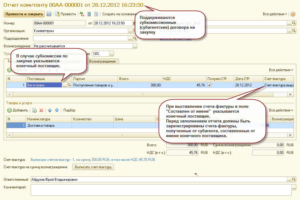 переработке", "Возврат товаров поставщику", "Отчет комитенту (о продажах)",