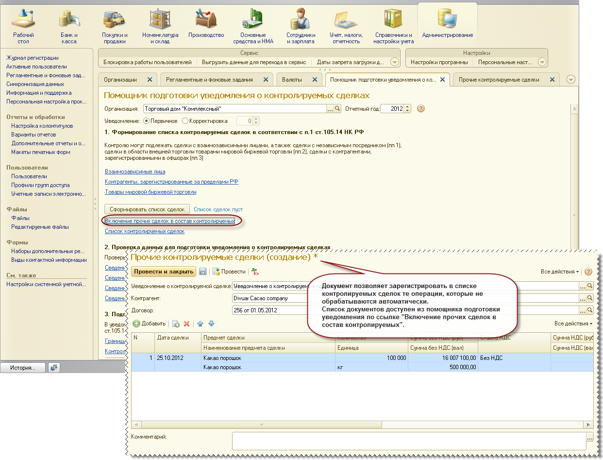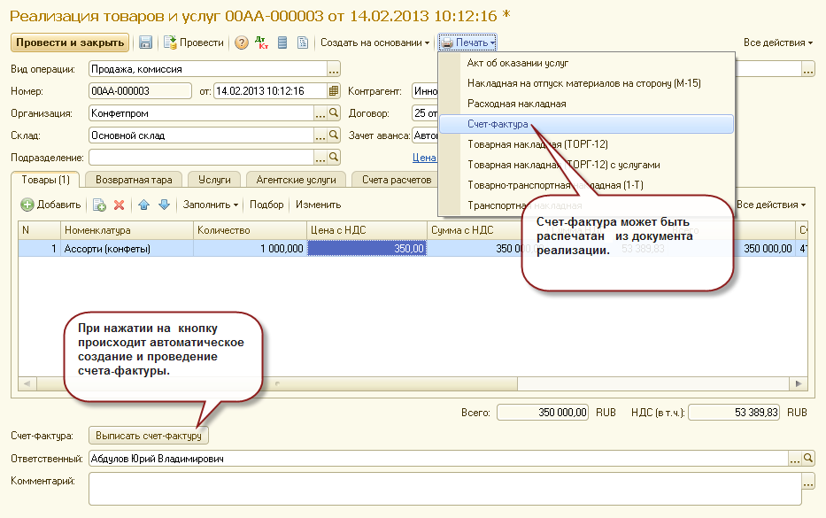 - Документы "Реализация товаров и услуг", "Акт об оказании