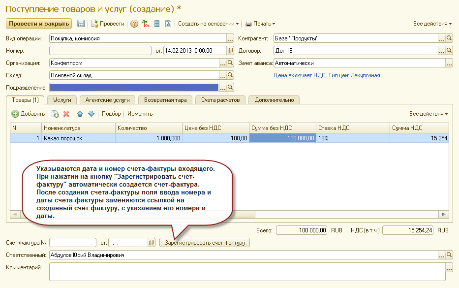 "Поступление доп. расходов", "Поступление из переработки", "Поступление НМА",