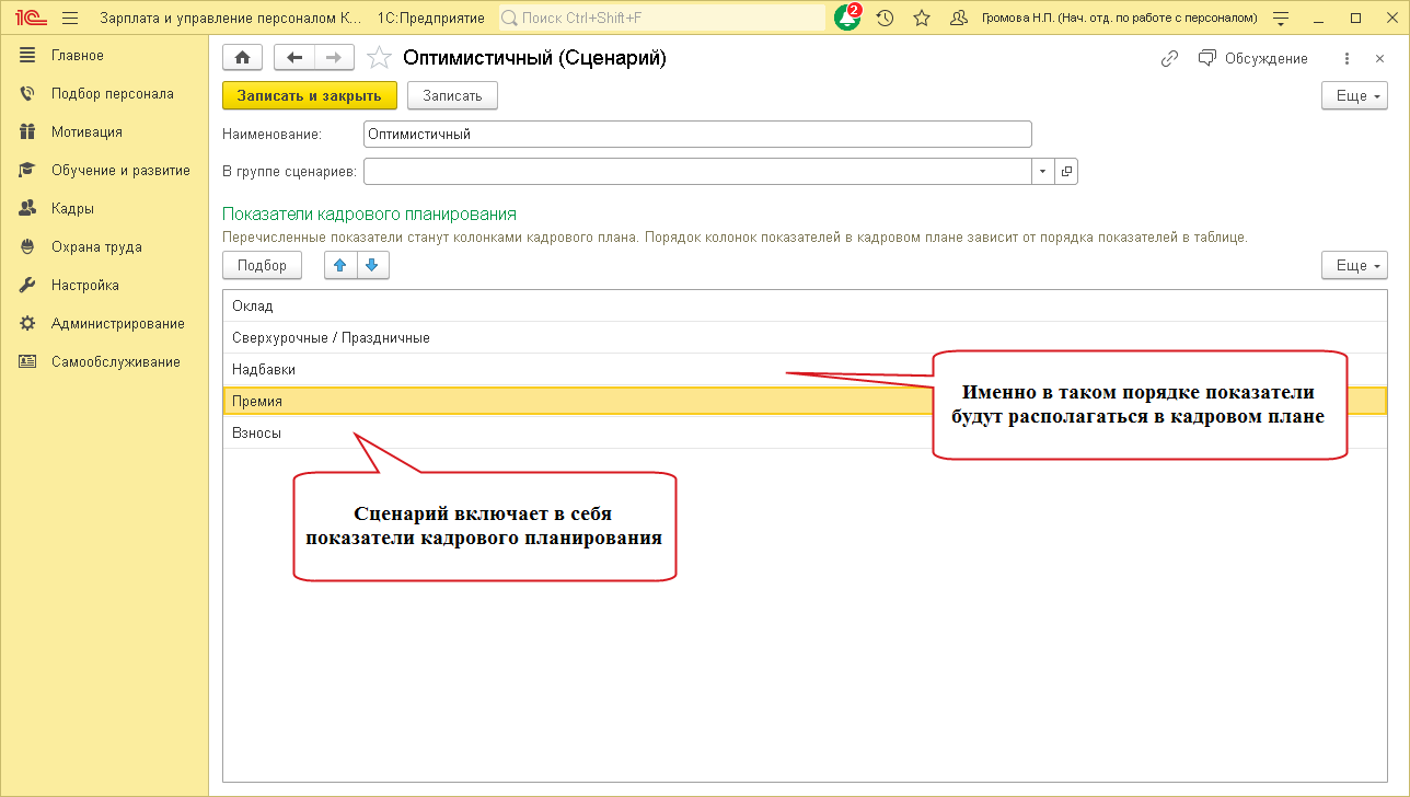 Одновременно можно создать несколько сценариев кадрового плана, например, Оптимистичный и Пессимистичный.