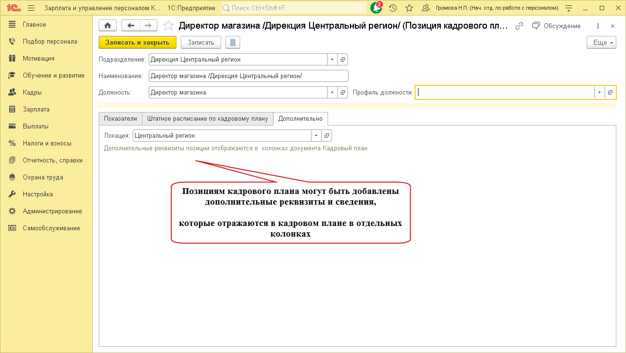 Для позиций кадрового плана могут быть добавлены дополнительные реквизиты и сведения.