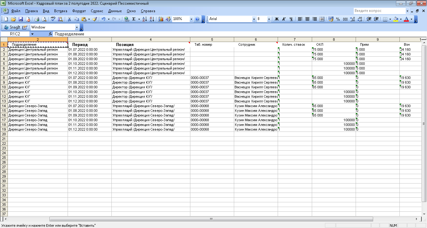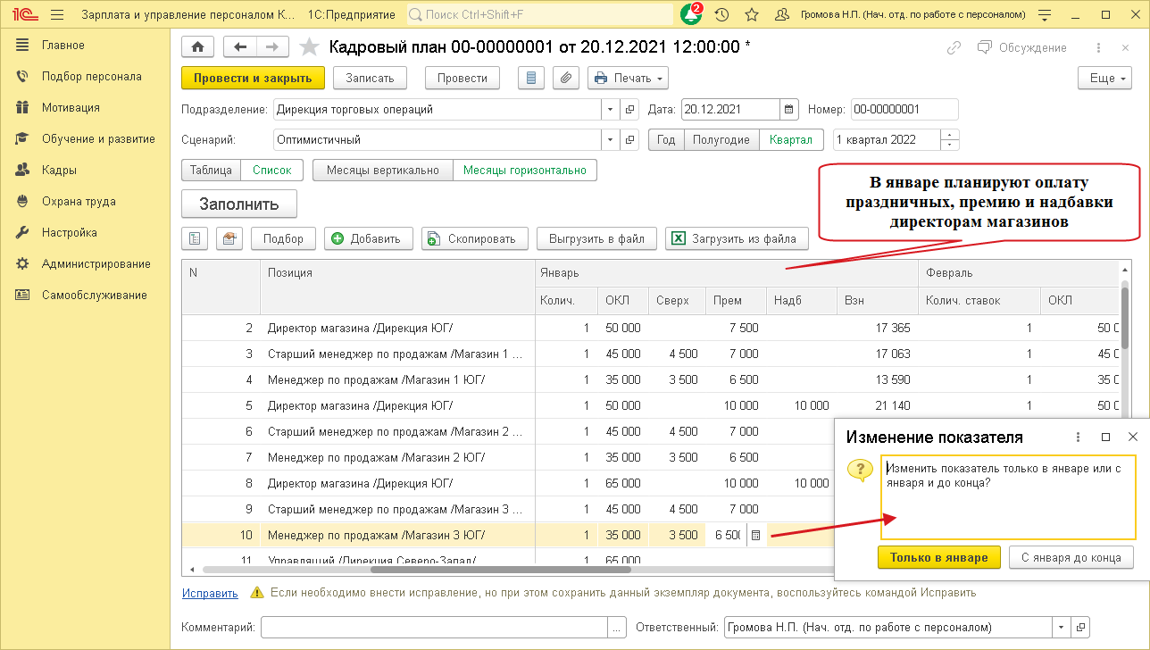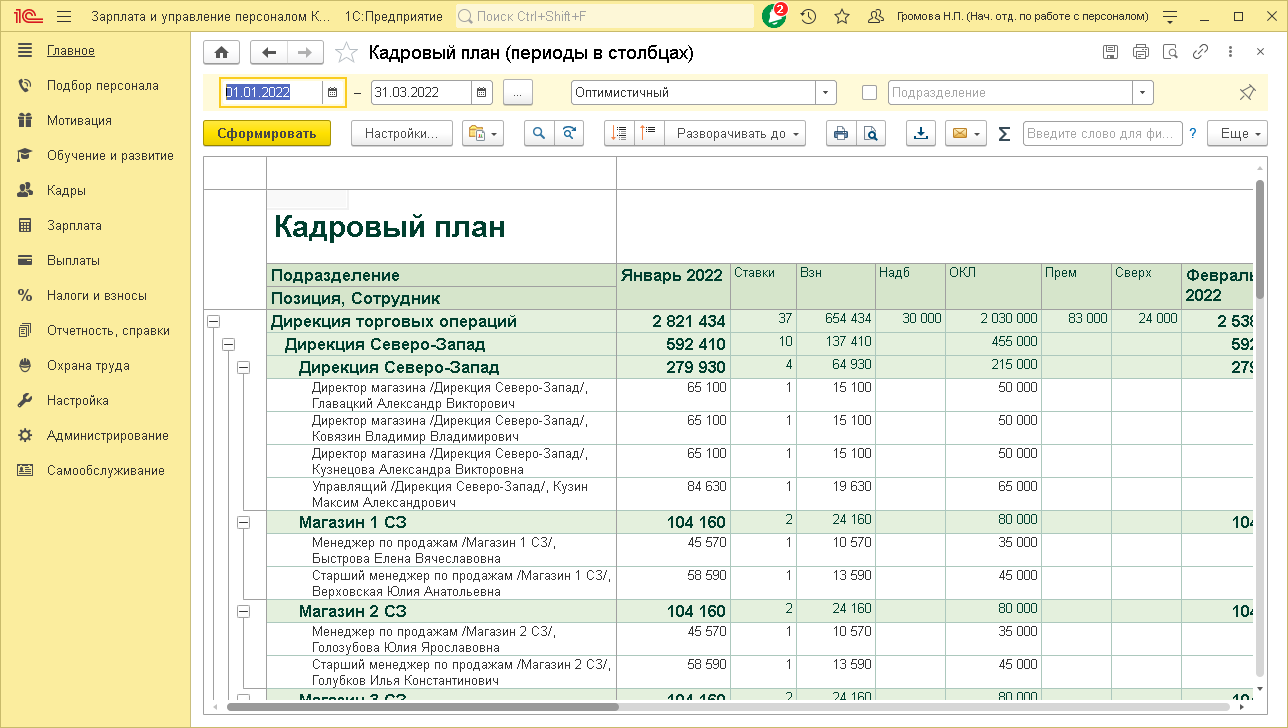 Например, нам нужно на период сезона увеличить штат продавцов на 200 человек. В кадровом плане мы увидим, какие затраты на персонал нас ожидают:
