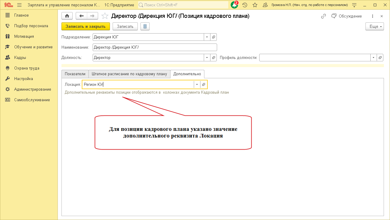 Для позиций кадрового плана можно добавить дополнительные реквизиты и сведения. Их значения отразятся в кадровом плане в отдельных колонках.