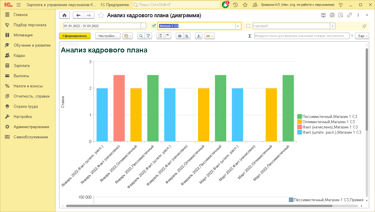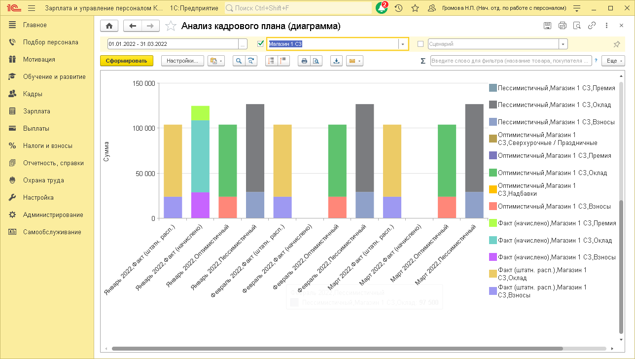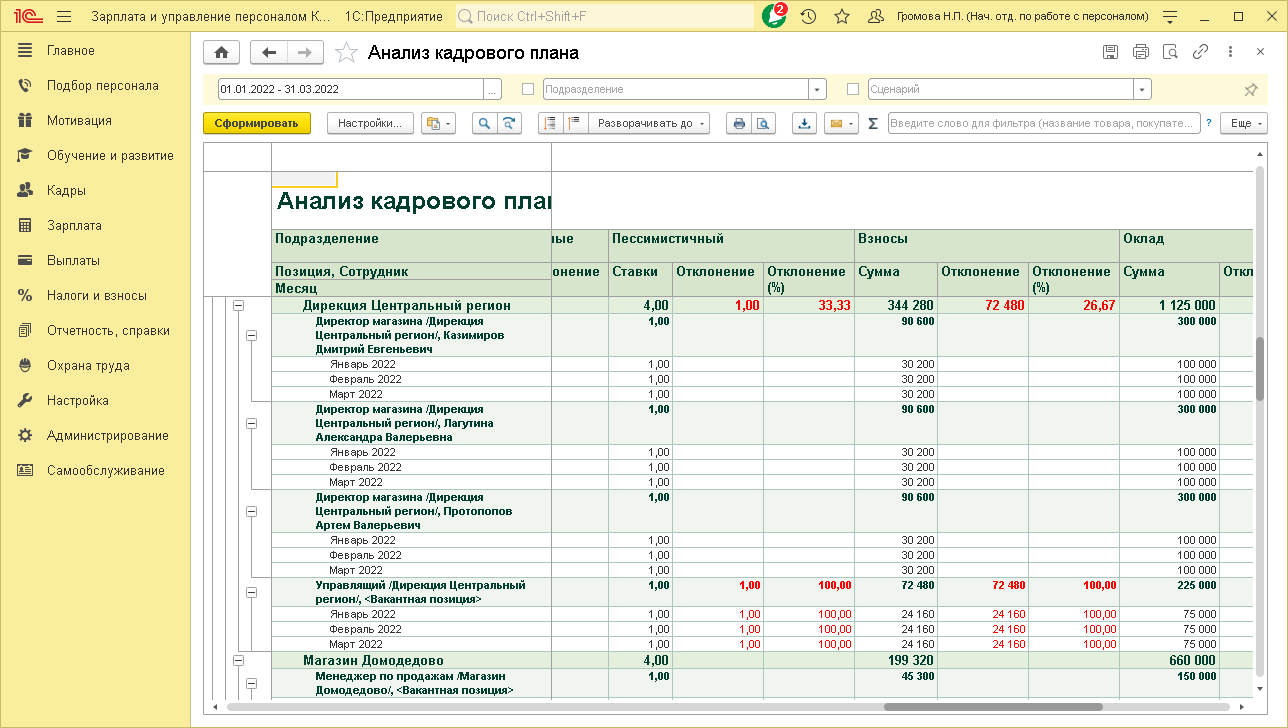 Аналитика кадрового планирования покажет детально затраты по каждому варианту, сравнит с текущим штатным расписанием.