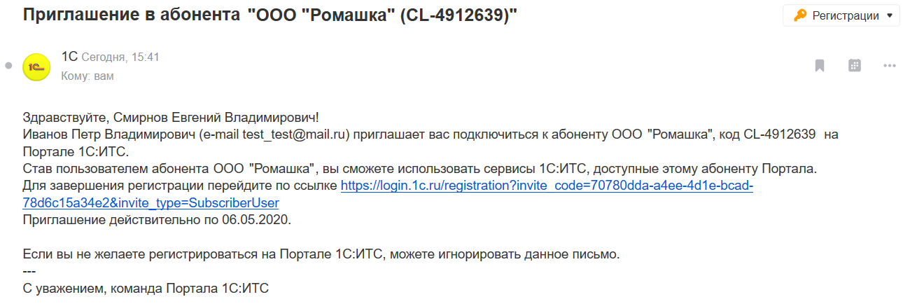 3. Приглашения придут на почту, которую вы указали. Сотрудник организации должен принять приглашение, нажав на активационную ссылку в письме.