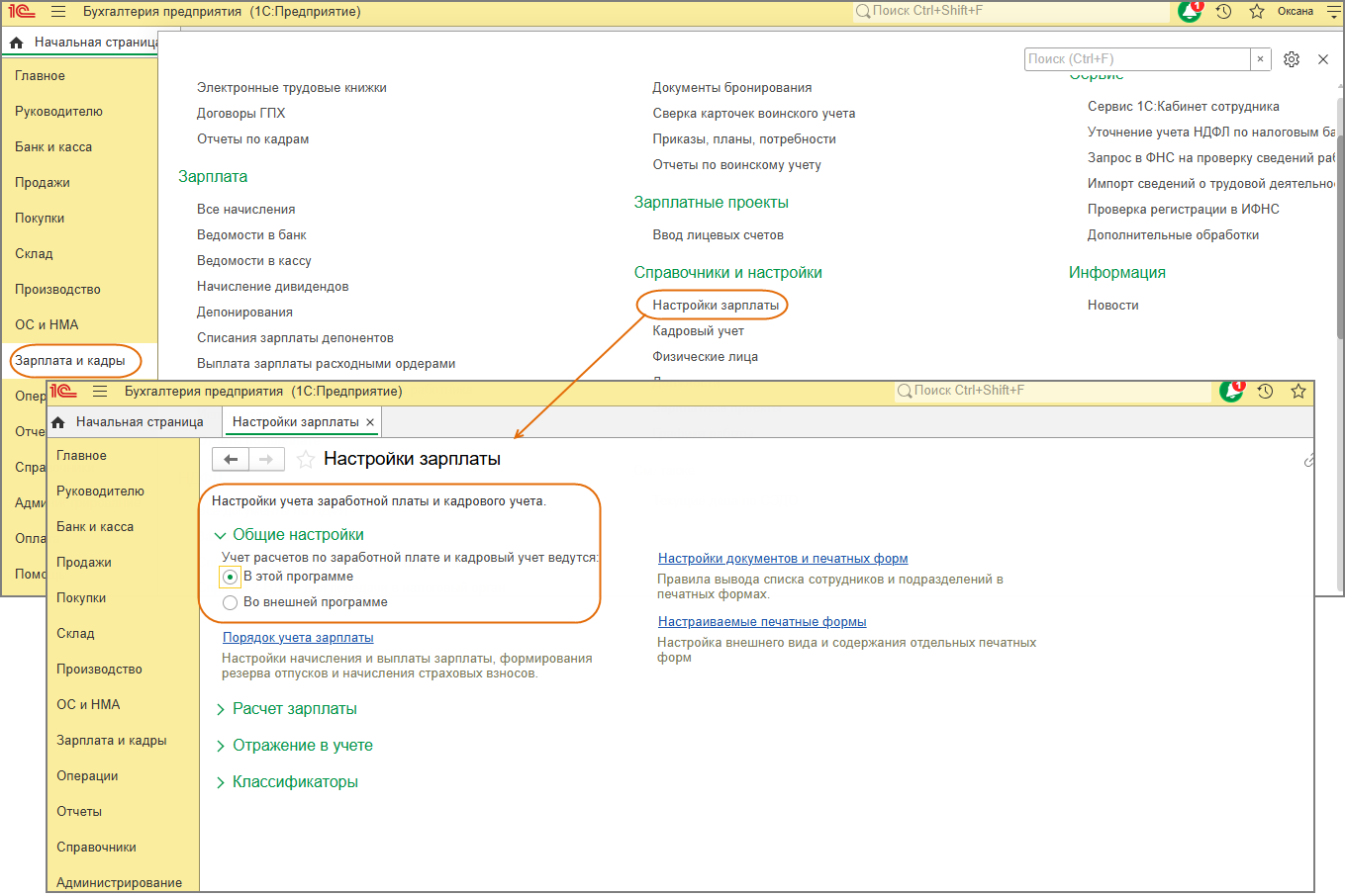 - Раздел Зарплата и кадры – Настройки зарплаты.