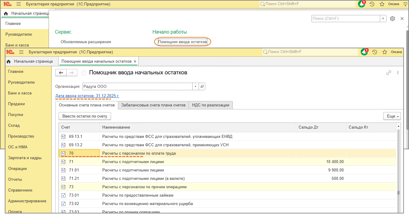 Перед вводом остатков проверьте, что установлена дата ввода остатков в одноименной ссылке. Подробнее о "Помощнике ввода остатков", установке даты и принципах ввода остатков см. здесь.