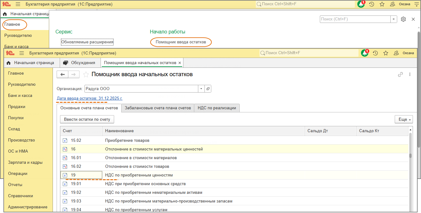 Перед вводом остатков проверьте, что установлена дата ввода остатков в одноименной ссылке. Подробнее о "Помощнике ввода остатков", установке даты и принципах ввода остатков см. здесь.
