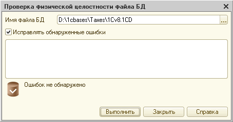 В комплект поставки входит утилита восстановления файлового варианта базы данных chdbfl.exe. Утилита предназначена для автономной проверки и исправления файла информационной базы 1Cv8.1CD (то есть без запуска программы «1С:Клиент ЭДО 8»).