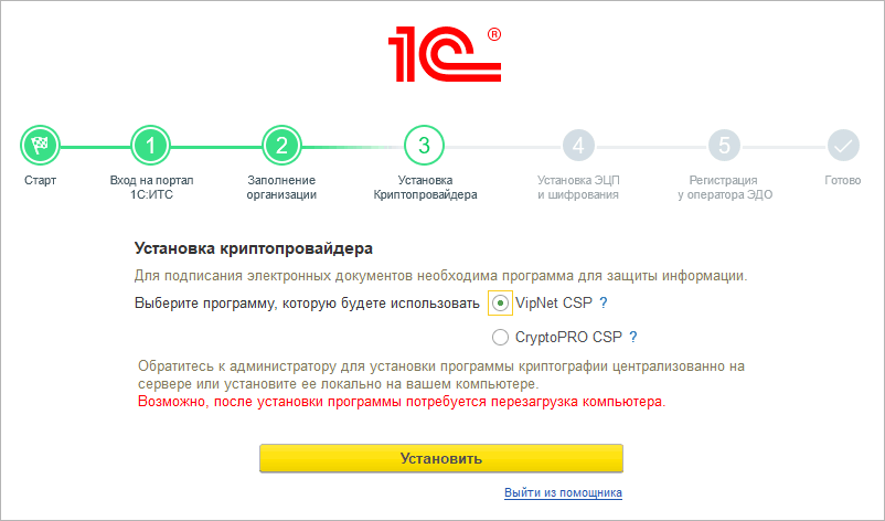 Шаг отображается, когда на компьютере не установлена ни одна из программ криптографии, поддерживающих требуемый ГОСТ Р 34.10-2012.