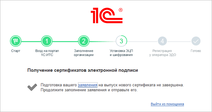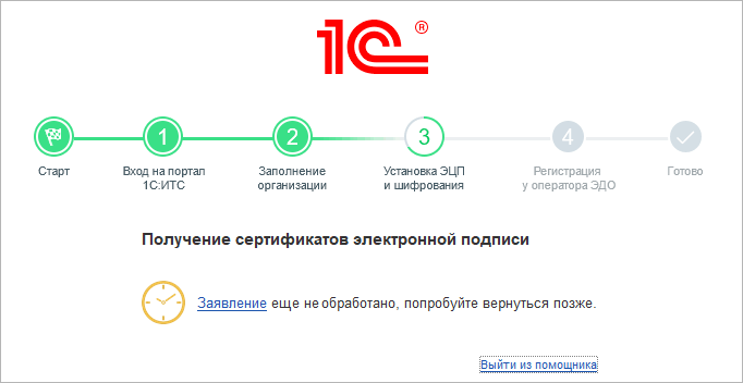 Помощник открывается до тех пор, пока в базе нет ни одной активной учетной записи ЭДО либо пока не нажата кнопка Больше не показывать при выходе из помощника.