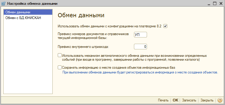 Необходимо установить флажок Использовать обмен данными с конфигурациями на платформе 8.2 в форме Настройка обмена данными.