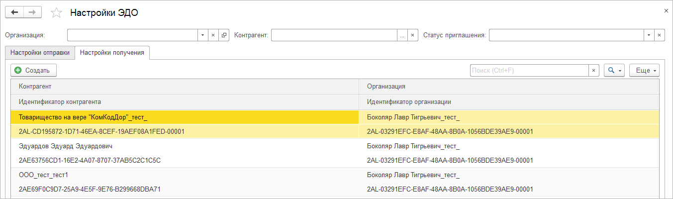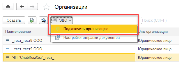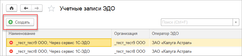 ■ Из списка Учетные записи ЭДО (Администрирование – Обмен электронными документами – Учетные записи ЭДО):