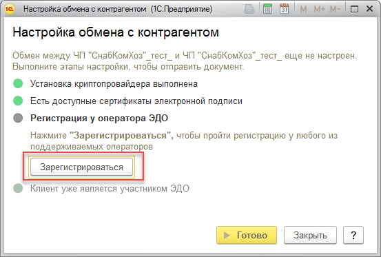 ■ Регистрация у оператора ЭДО – регистрация учетной записи у одного из доступных операторов ЭДО.