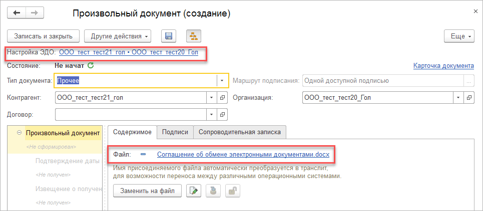 Обмен через сервис ЭДО возможен только при применении электронных подписей и выполненных настройках.