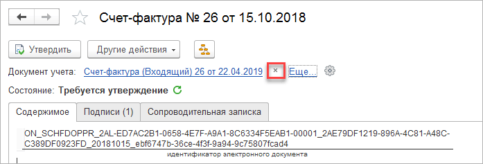 Также существует возможность разорвать связь между электронным документом и документом учета.