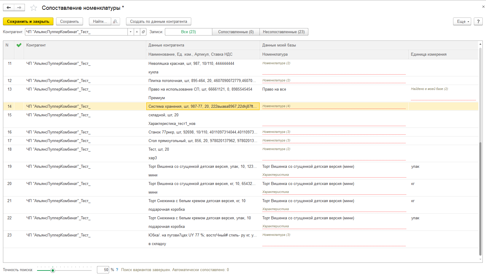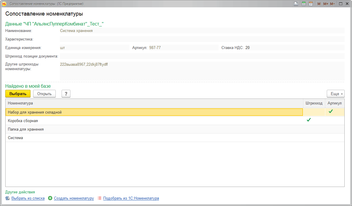 ■ Найдено в моей базе – посмотреть и выбрать один из автоматически подобранных вариантов сопоставления: