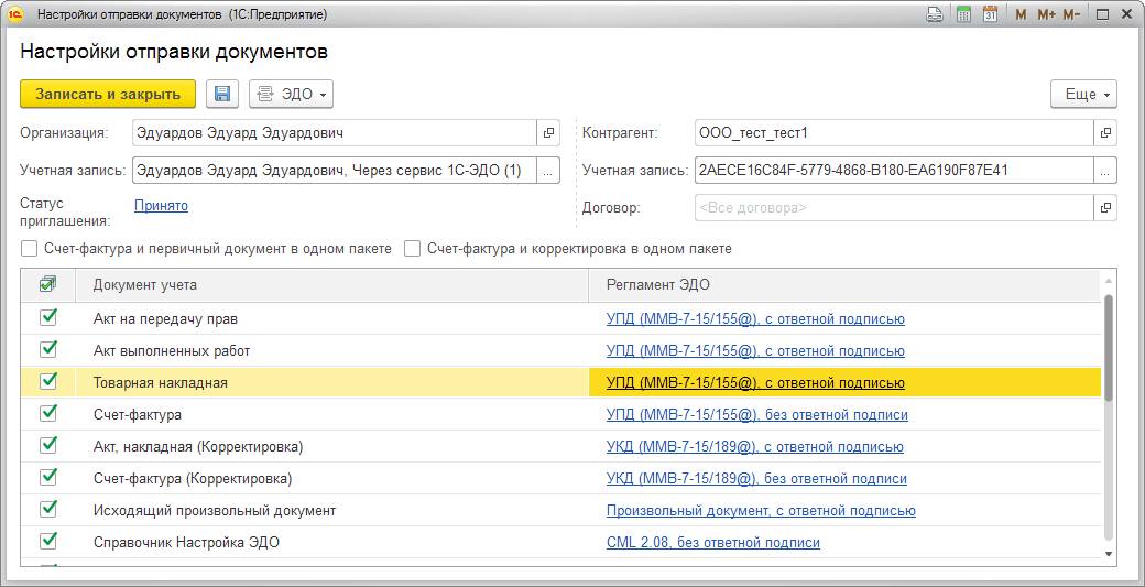Если же при обмене задано требование формировать электронную подпись на встречном (другом) электронном документе (например, ТОРГ-12 (титул покупателя) или акт (титул заказчика) форматов ФНС), то в форме входящего электронного документа по команде Утвердить автоматически будет создан требуемый по регламенту обмена встречный (другой) электронный документ и передан на подпись.
