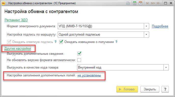 В группе Другие настройки отображаются доступные варианты заполнения полей и дополнительных данных.
