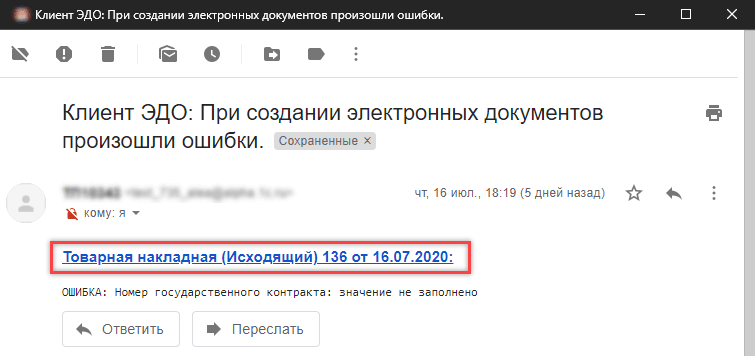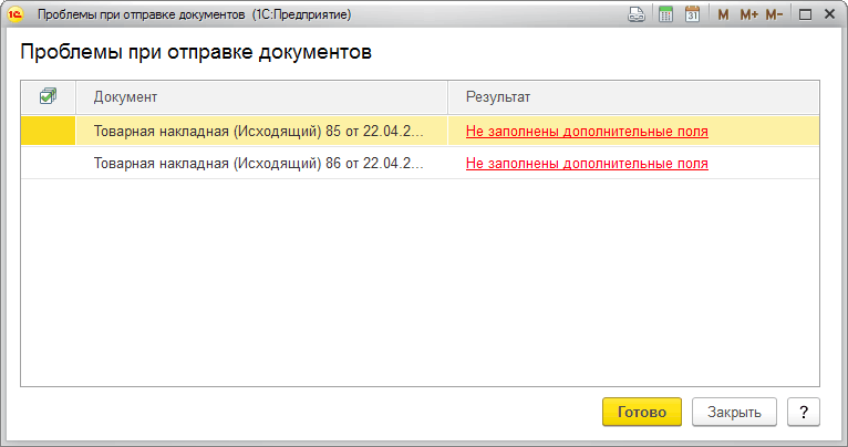 В электронном письме будет указан перечень документов учета, по которым не были автоматически созданы электронные документы, и приведено краткое описание ошибки.