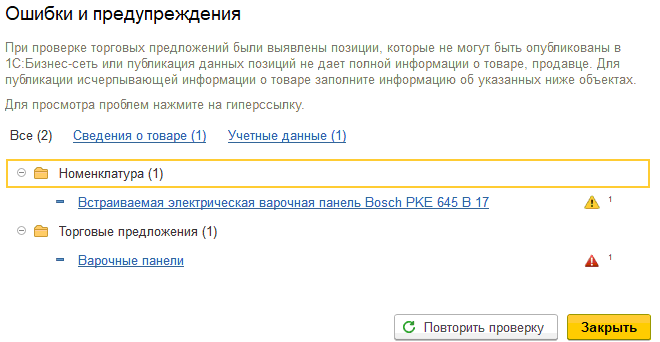 Часть данных при публикации в сервисе проверяется на заполненность. Для быстрого выявления ошибок заполнения и их исправления предусмотрена форма проверки торговых предложений.