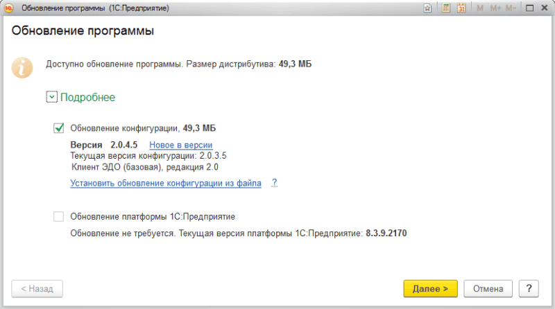 Если обновление найдено, для начала процедуры обновления необходимо выполнить команду Далее.