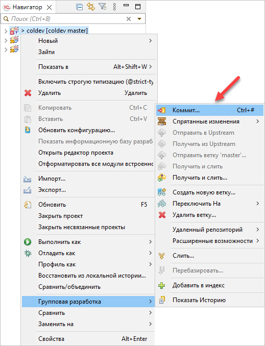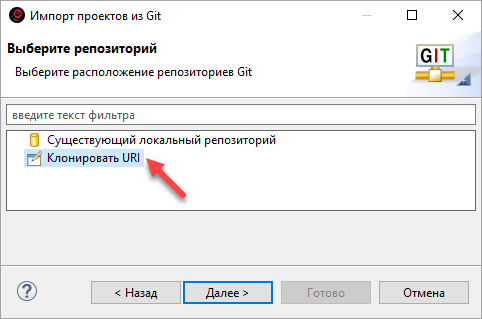 Клонировать репозиторий и сразу же импортировать его проект в рабочую область можно в панели Навигатор. Если у вас нет еще ни одного проекта, нажмите ссылку в центре панели — Импортировать проект(ы) из репозитория Git. Если панель уже занята проектами, нажмите .