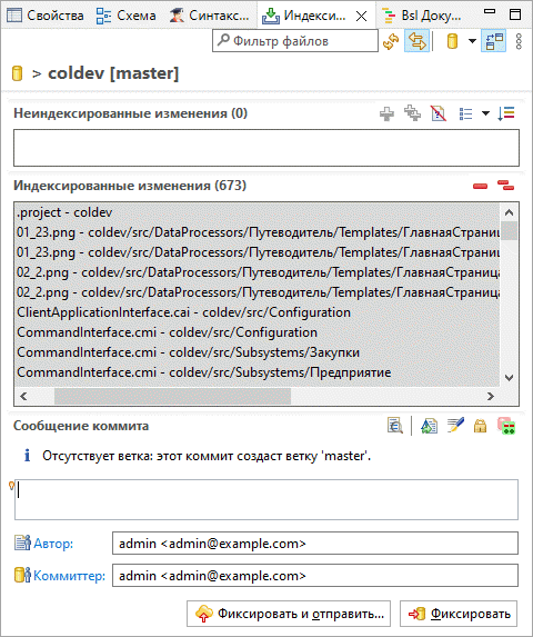 В панели Навигатор вы увидите проект, импортированный из локального репозитория после клонирования. Рядом с именем проекта, в квадратных скобках, вы увидите имя репозитория и имя ветки, которая была извлечена в рабочий каталог.