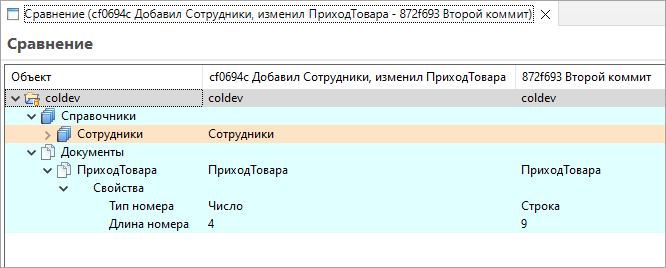 1C:EDT покажет результат в редакторе сравнения и объединения.