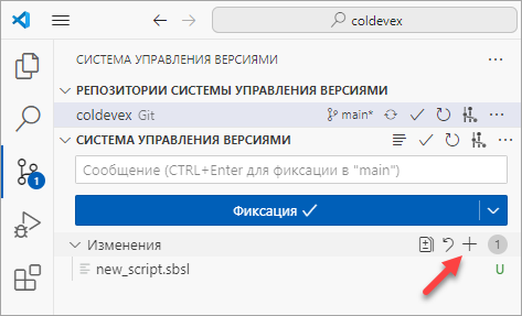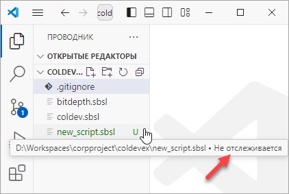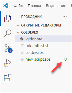 Предположим, вы добавили в свой проект новый файл, new_script.sbsl. Если этого файла раньше не было, вы увидите свой неотслеживаемый файл вот так: