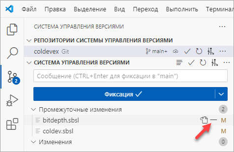 (Отменить промежуточное изменение / Unstage Changes) в строке того