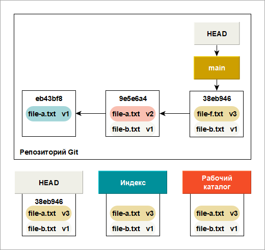 В данном конкретном случае, версия v3 нашего файла все еще остается в коммите внутри базы данных Git и вы можете вернуть ее, но если вы не зафиксировали эту версию, Git перезапишет файл и ее уже нельзя будет восстановить.