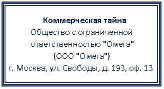 Пример оформления грифа "Коммерческая тайна" юридического лица:
