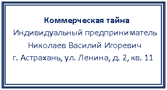Пример оформления грифа "Коммерческая тайна" индивидуального предпринимателя: