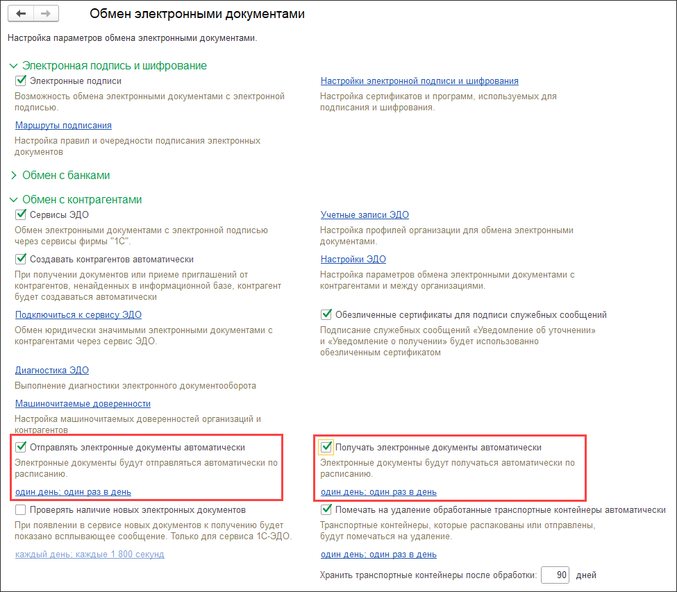 Автоматическая отправка и получение документов будут происходить по настраиваемому расписанию. Для авторизации в сервисе, а также для подписания служебных сообщений будет использован обезличенный сертификат.