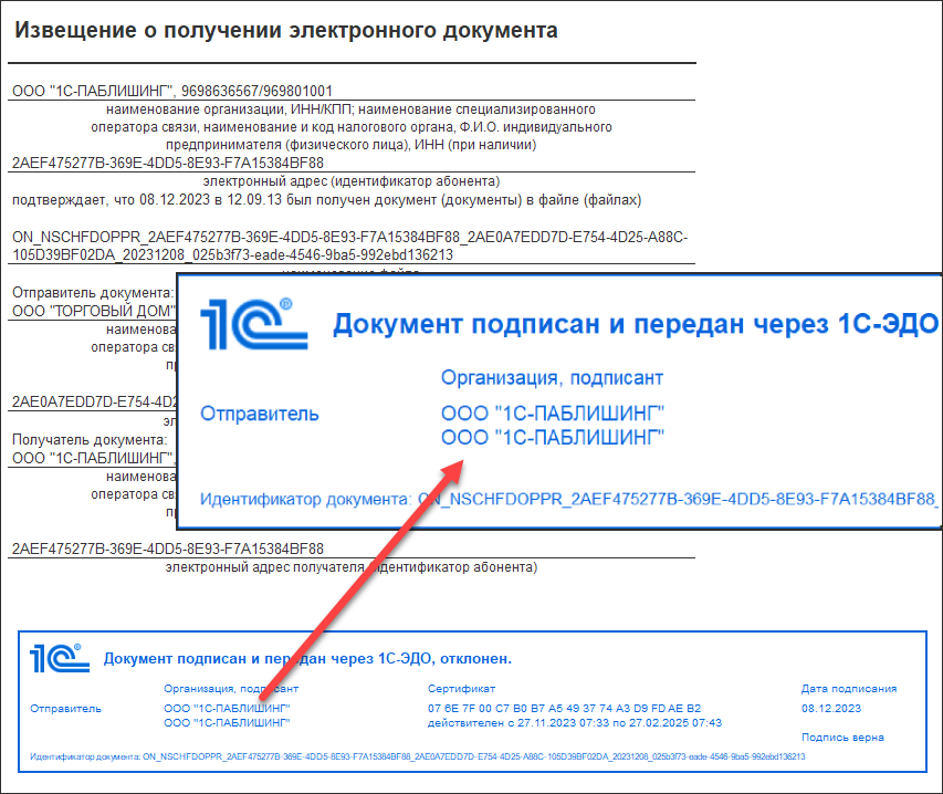 Подписание служебных сообщений "Уведомление об уточнении" и "Извещение о получении" будет происходить обезличенным сертификатом.
