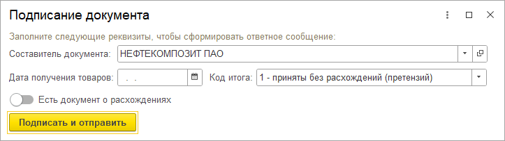 В открывшемся окне имеется возможность создать документ учётной системы на основании данных входящего электронного документа, а также подобрать ранее созданный.