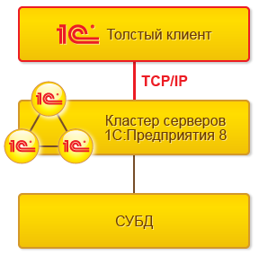 Толстый клиент — это клиентское приложение «1С:Предприятия», программа, работающая на компьютере пользователя и обеспечивающая интерактивное взаимодействие c информационной базой (файловый вариант работы) или с кластером серверов «1С:Предприятия» (клиент-серверный вариант работы).