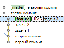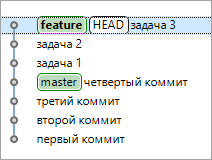 Обратите внимание, что коммиты «задача 1», «задача 2», «задача 3» не теряются и не