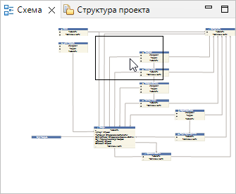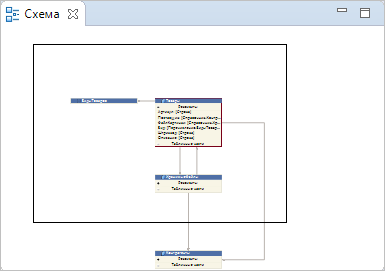 При совместной работе с редактором схемы данных панель Схема показывает ту часть схемы, которая в данный момент отображается в окне редактора.